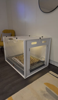 After thorough research and consultation with experts, we opted for solid rear and side panels with a clear front & door. This not only allows for easy access from either end but also provides excellent visibility for you and your pet. More importantly, it creates a cosy, den-like environment in the corners, a feature your dog will undoubtedly love.