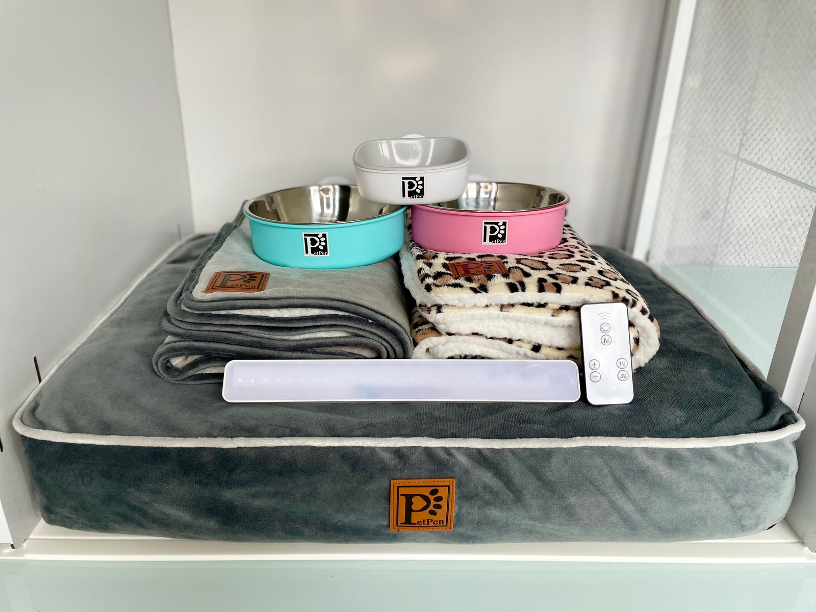 Explore our range of premium PetPen accessories designed to elevate your pet's comfort and style. From cosy beds and soft blankets to practical bowls and soothing LED lights, each accessory is crafted with your pet's well-being in mind. Click here to discover the perfect additions for your pet's ultimate safe space.